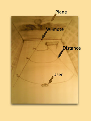 The project consists if two cameras, AV goggles, two RC hobby motors, Wiimote controller and a projection plane. The first camera is attached to the goggles and the second to RC motors. The position of the first camera depends on the position of the second. Both move along X and Y axis thanks to the Wiimote controller placed under the projection plane. The Wiimote controller's role is to be a vantage point and to read the position of an object in 2D or 3D space. In this case it is the position of the first camera in 2D space that is being read. Thanks to these specific values of the controller, it is possible to send the data of a position of an object to be received by RC motors that control the position of the second object. And so, the position of the first camera is equal to the position of the second camera.